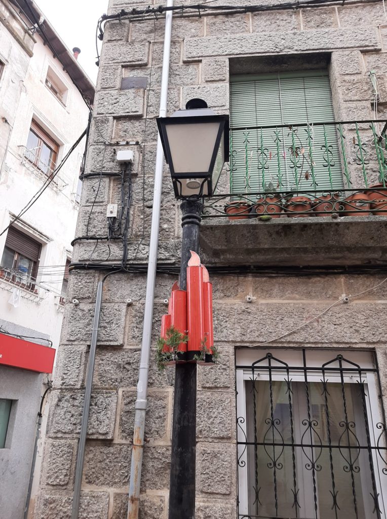 Posiblemente algunos ya os habréis dado cuenta de la «extraña» aparición de unas navideñas velas en las farolas de la calle Mayor.